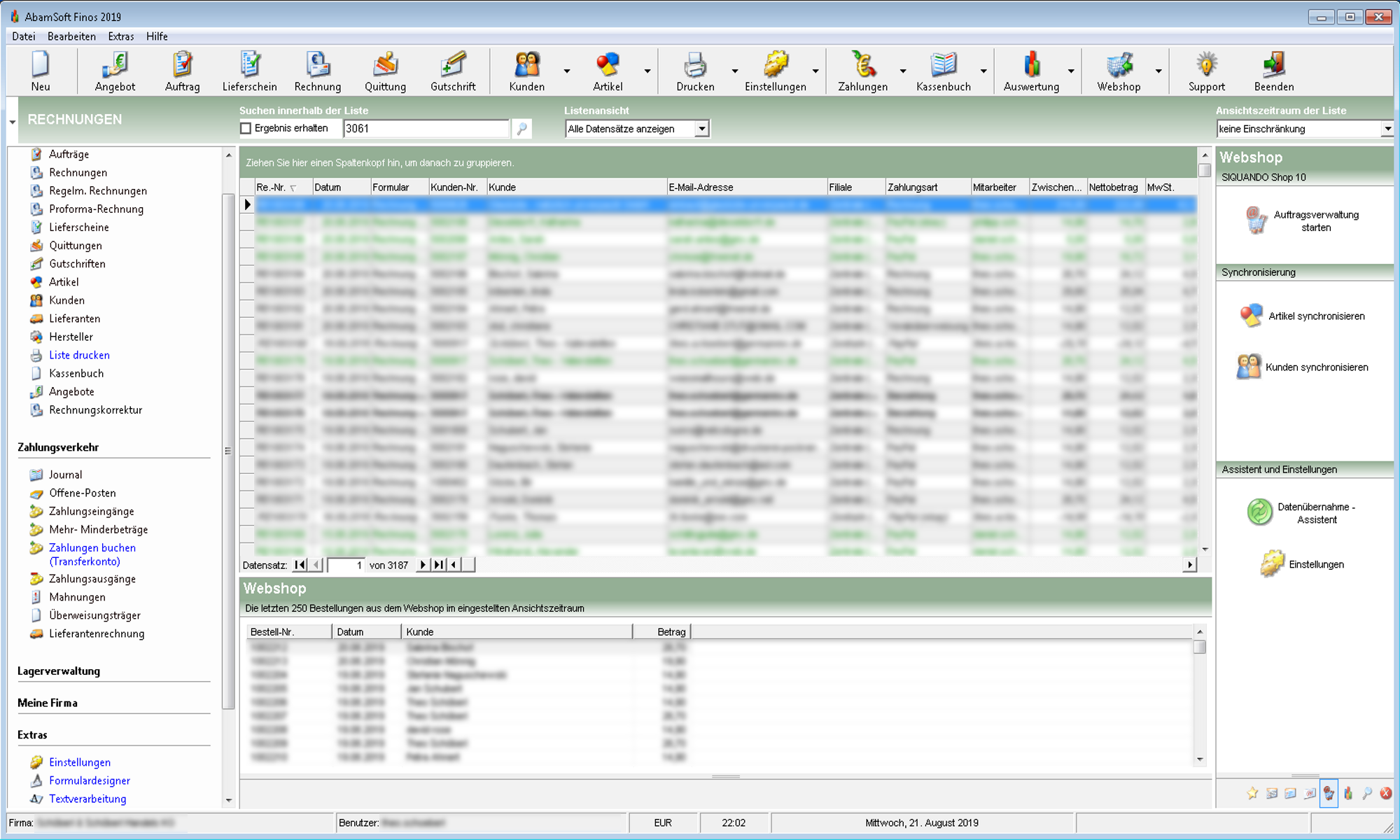Und heute – Ende 2019 sind noch immer die gravierendsten der Fehler vorhanden; genau die Fehler, die ein flüssiges Bearbeiten z.B. von Bestellungen aus dem SIQUANDO-Shop verhindern.